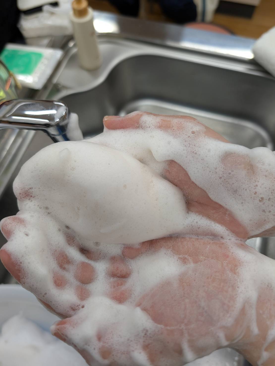 浮いてとれたファンデーションの汚れで泡が肌色に…